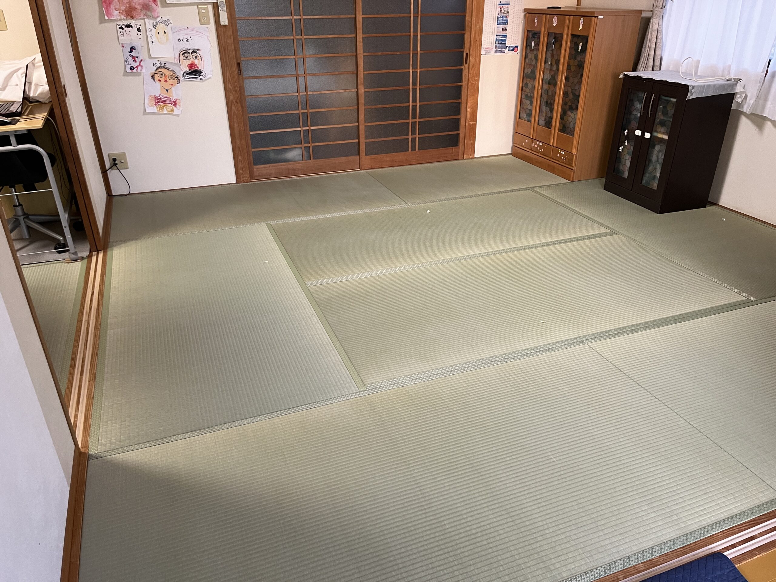 何度も打ち合わせをして決めて頂きました国産高級表ひのさくら!い草の良好な所をふんだんに使い綺麗に織り込んである良好な畳表です!経年劣化後も綺麗な飴色の畳をお楽しみください!ありがとうございました😊