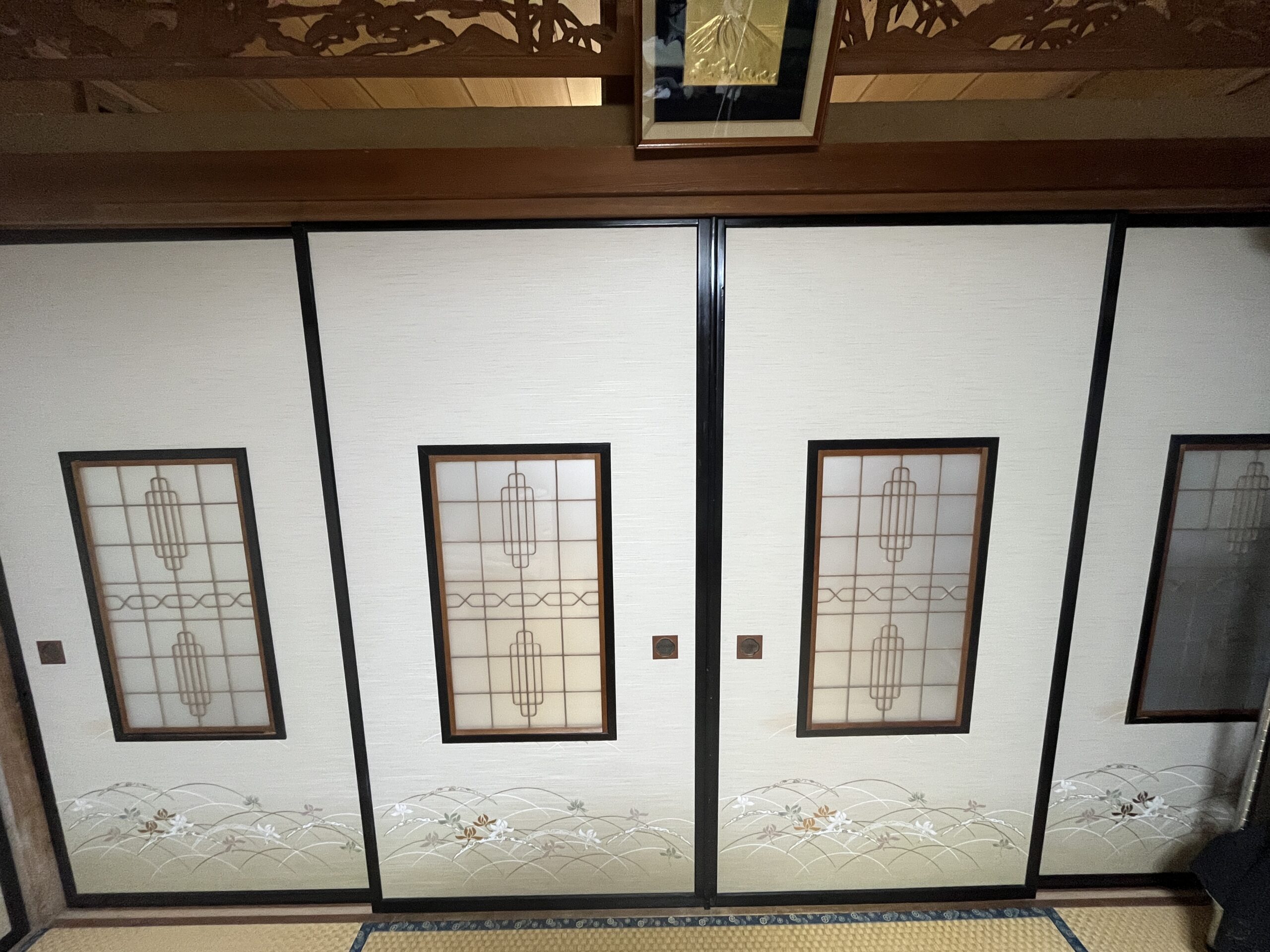 今ではなかなか珍しい源氏襖を施工させて頂きました。手間暇かかる襖ですがその分最後にガラスをはめ込んだときの仕上がりは最高です😊ありがとうございました😊